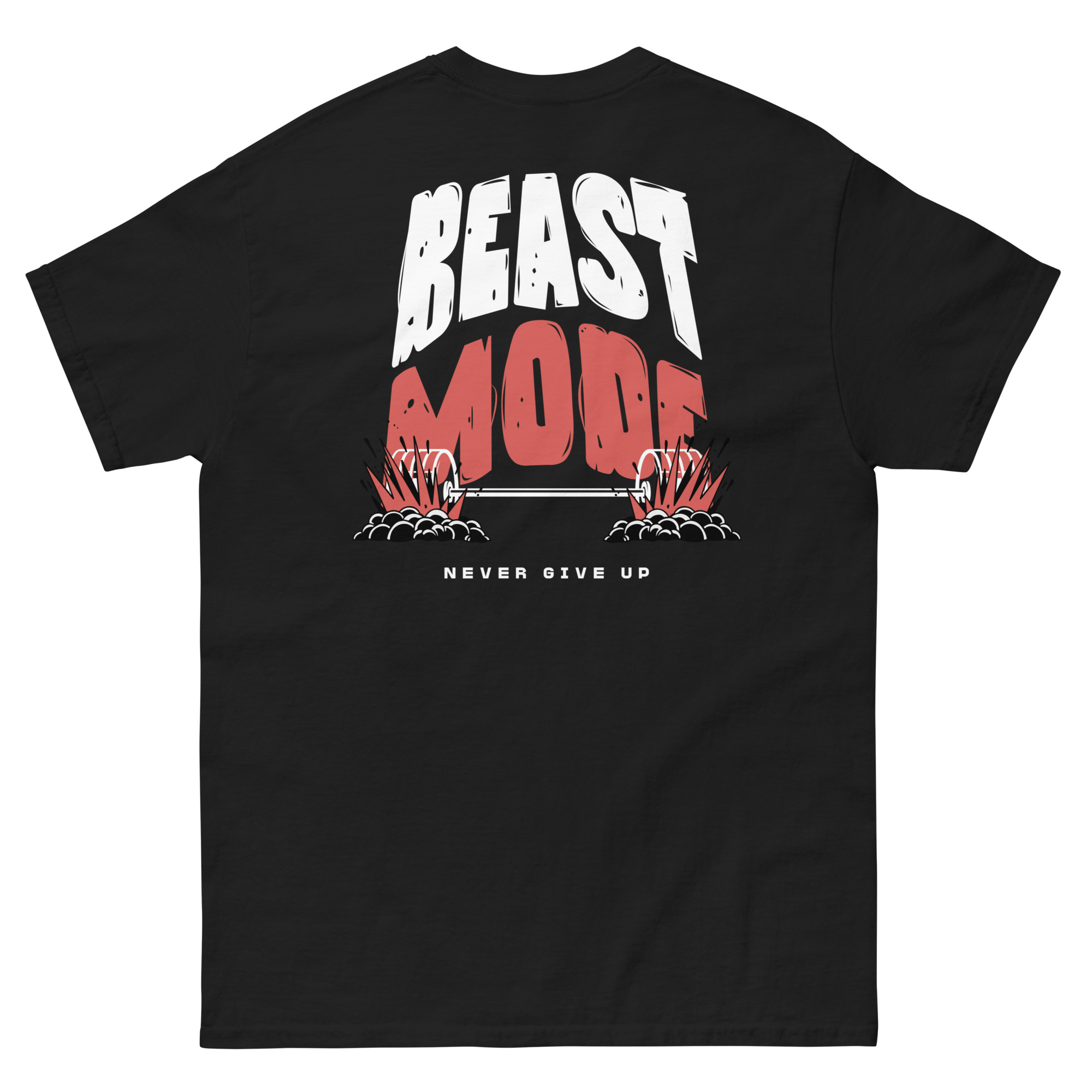 Beast Mode, Never Give Up Unisex Classic Tee (Graphic on Back)