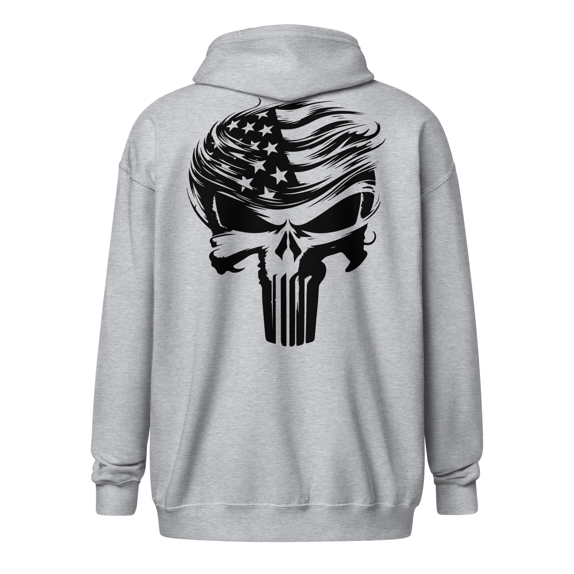 Trump Punisher Skull (Oversized Graphic - Black) Unisex Full-Zip Hoodie